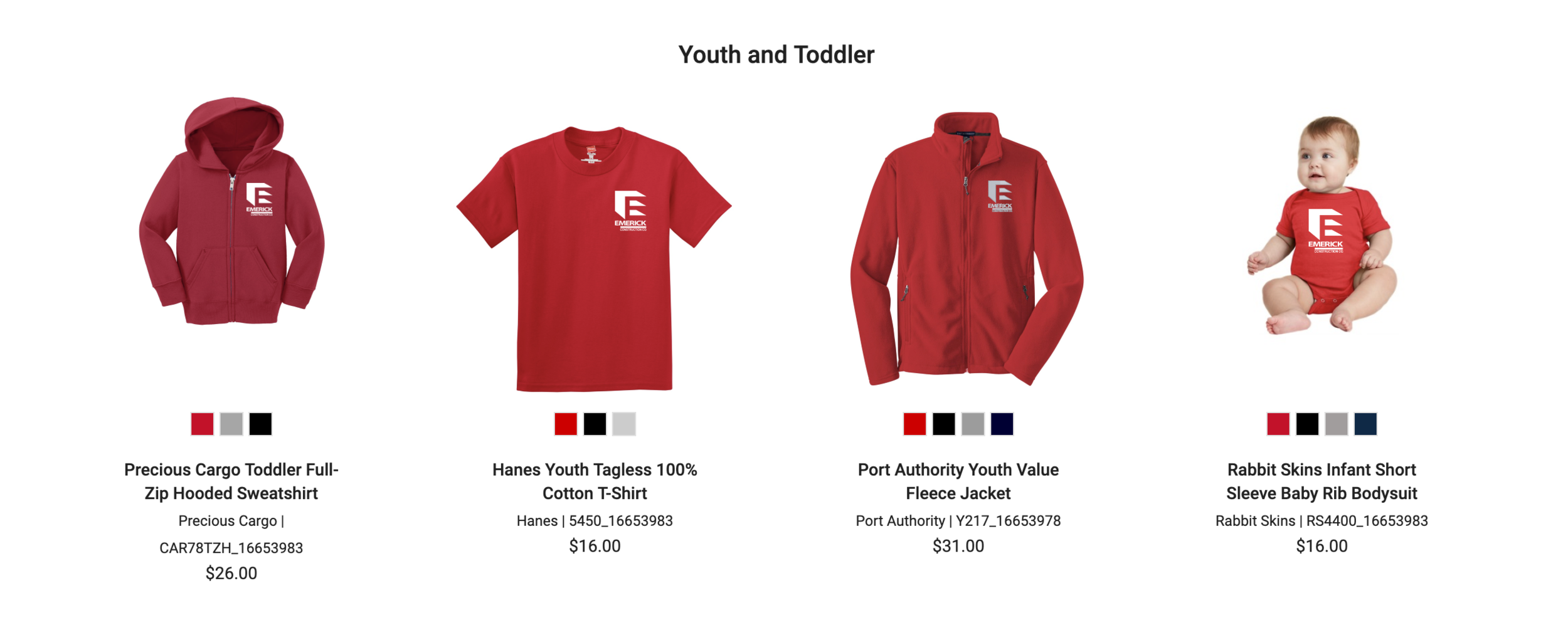 Thank you for all your hard work, without you we wouldn’t be where we are today! Below you’ll find several new options to choose from to spend your “Emerick Bucks”. You also have the ability to continue to purchase Emerick logo clothing items too.
